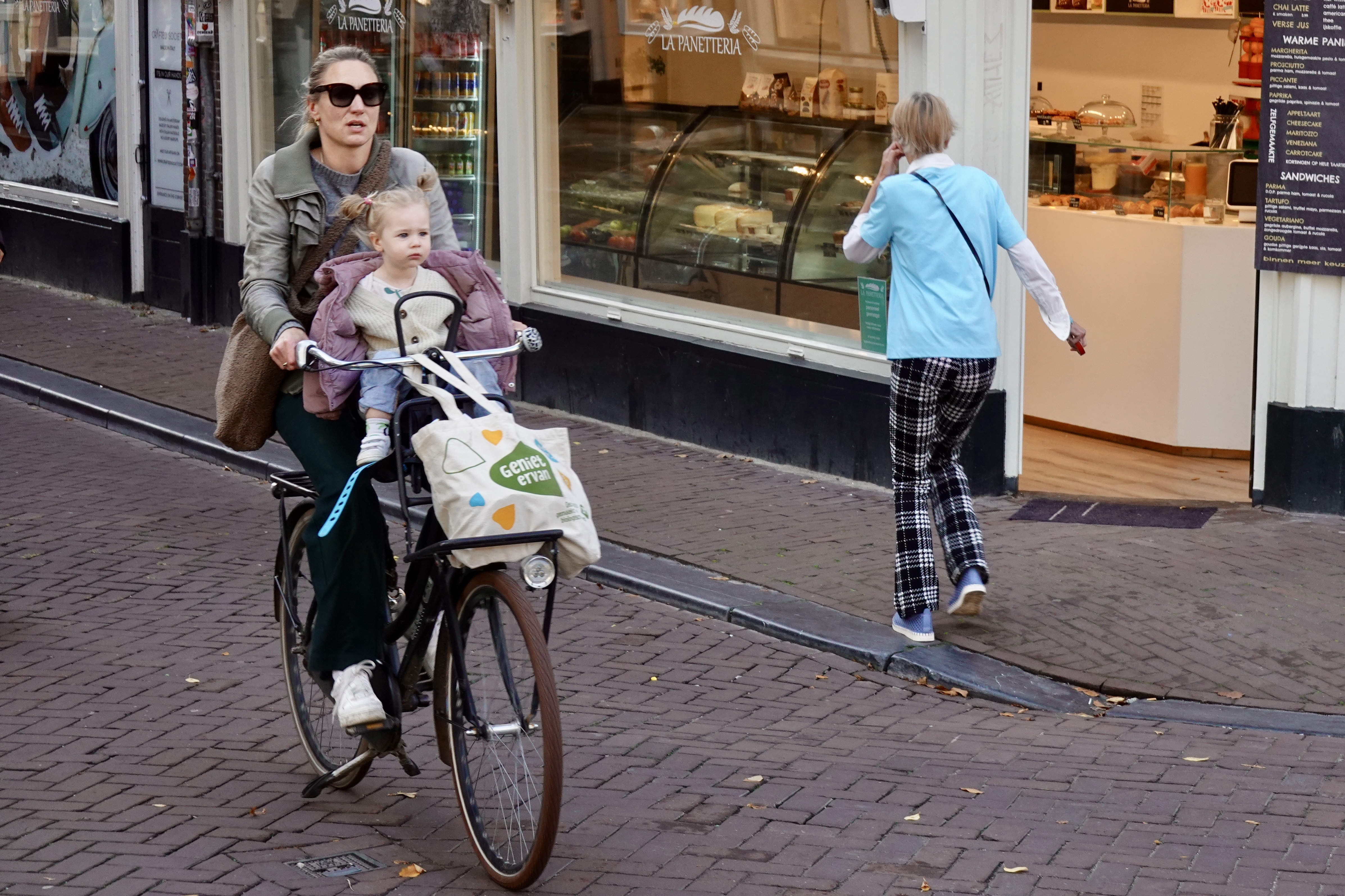Late last year, we spent some time in Amsterdam, a city where people bicycle everywhere in style. They carry children large and small, dogs in baskets, and they don’t wear helmets. This must be what it’s like to live in a country where bicyclists aren’t afraid of getting smooshed by cars.