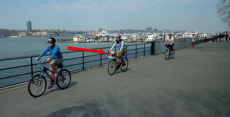 Just missed the rare double-header yesterday – two dogs, one basket. But this one rolled by early this afternoon south of the Boat Basin just north of the old Picklery on the Hudson Greenway. Near the monorail.