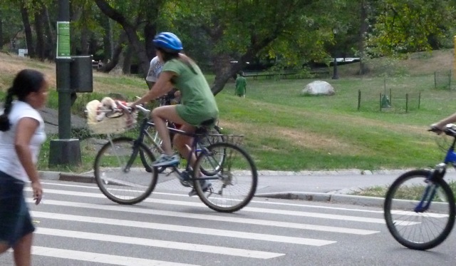 Ignoring oncoming bikes and joggers, and a particularly uppity skater, I u-turned and sped off after the rider. But the lights had changed and buses were entering and exiting the parking lot and I had to stop. I watched a bus go, but the next on hesitated and I jumped through the light. Victory! Next light, red again, and a cop waving cars through. Defeat! A few seconds later, the light changed and off I went. The guy was nowhere in sight and I rode like the old me, weaving, dashing, accelerating around wide walkers with their ridiculous triple-decker strollers, cutting off all those people who had no business being there: everyone!