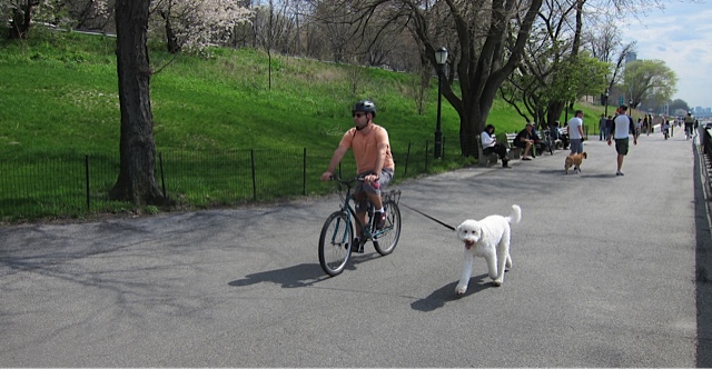 Standard poodle (I think), keeping pace on the Greenway.