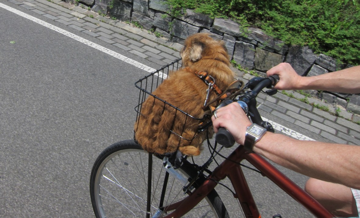 I couldn’t just let this go… what if the picture was blurry when I blew it up at home? Do you know how rare a dog in the basket of a male rider is? Sure, you’ll see men running with dogs, occasionally even pulling a dog in a trailer hitched to the seatpost. But never in a basket. Never.