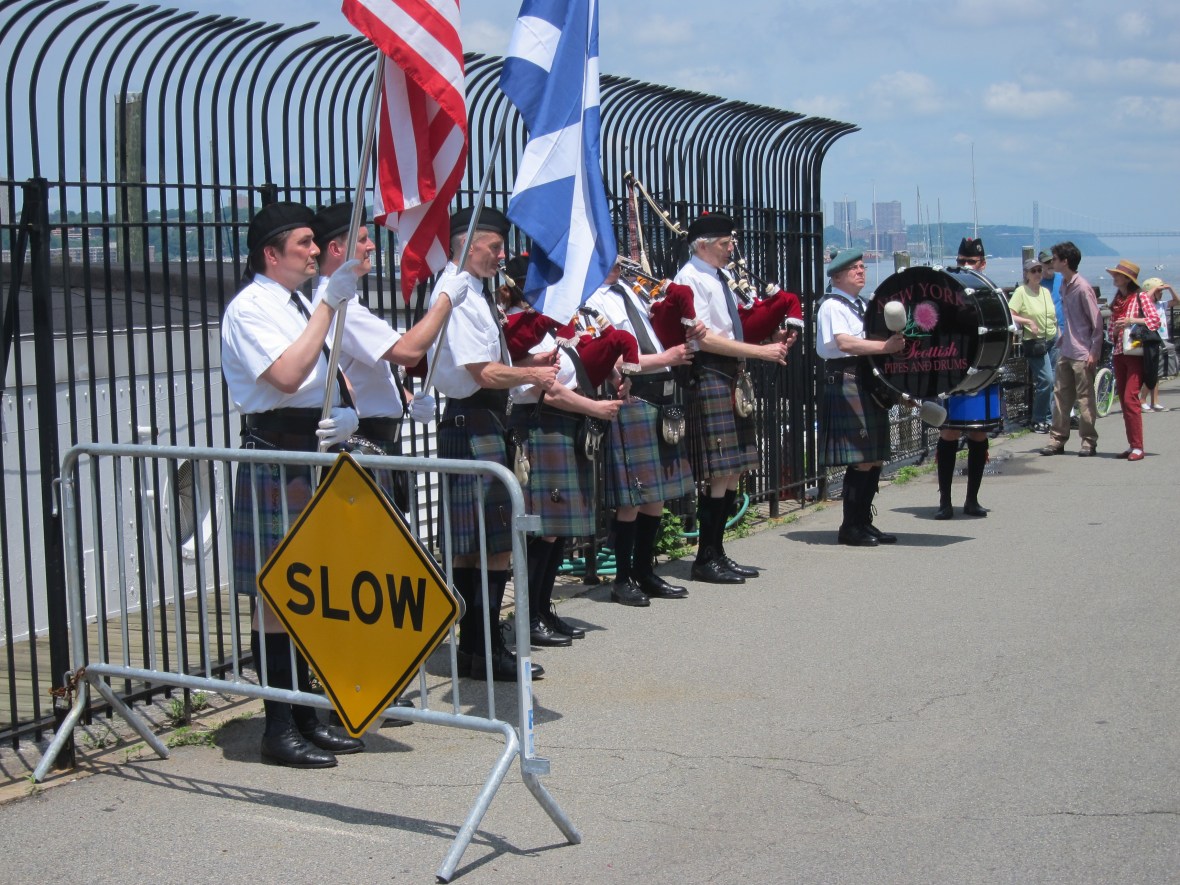 Heart jack-hammering, I turned around, trying to find that serene feeling. But adrenaline was in my veins and I sped and weaved the rest of the way, letting all those who dared be an obstacle… Also of interest today, a bagpipe band: